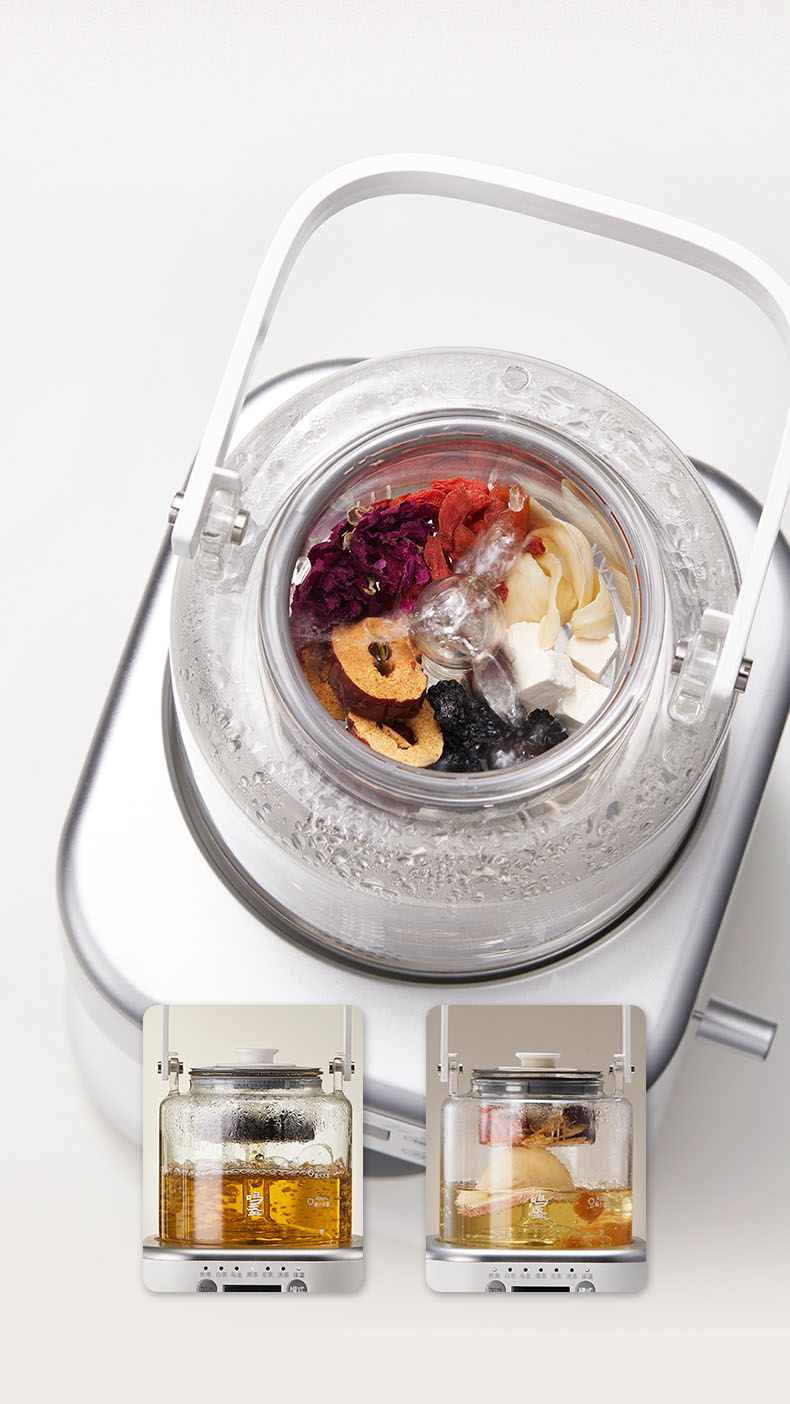 取下茶漏后,一秒变身养生壶,适宜四季熬煮养生食材。