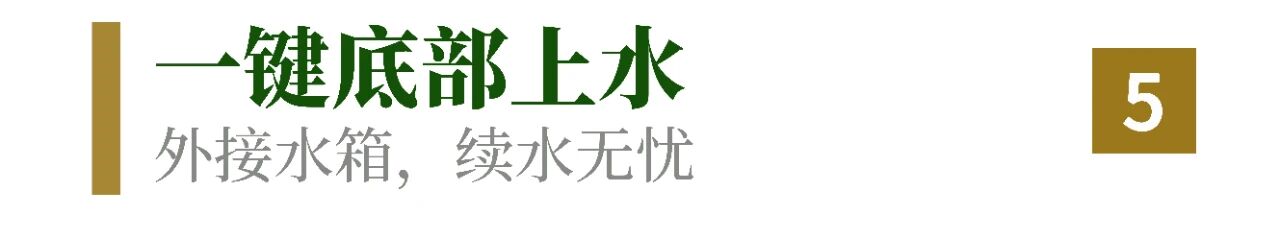 外接水箱设计,免开盖、免移动,只需轻轻一按,一次上水600mL,更可边煮边续水,随按随停,灵活调节口味浓淡,全程优雅不繁琐。