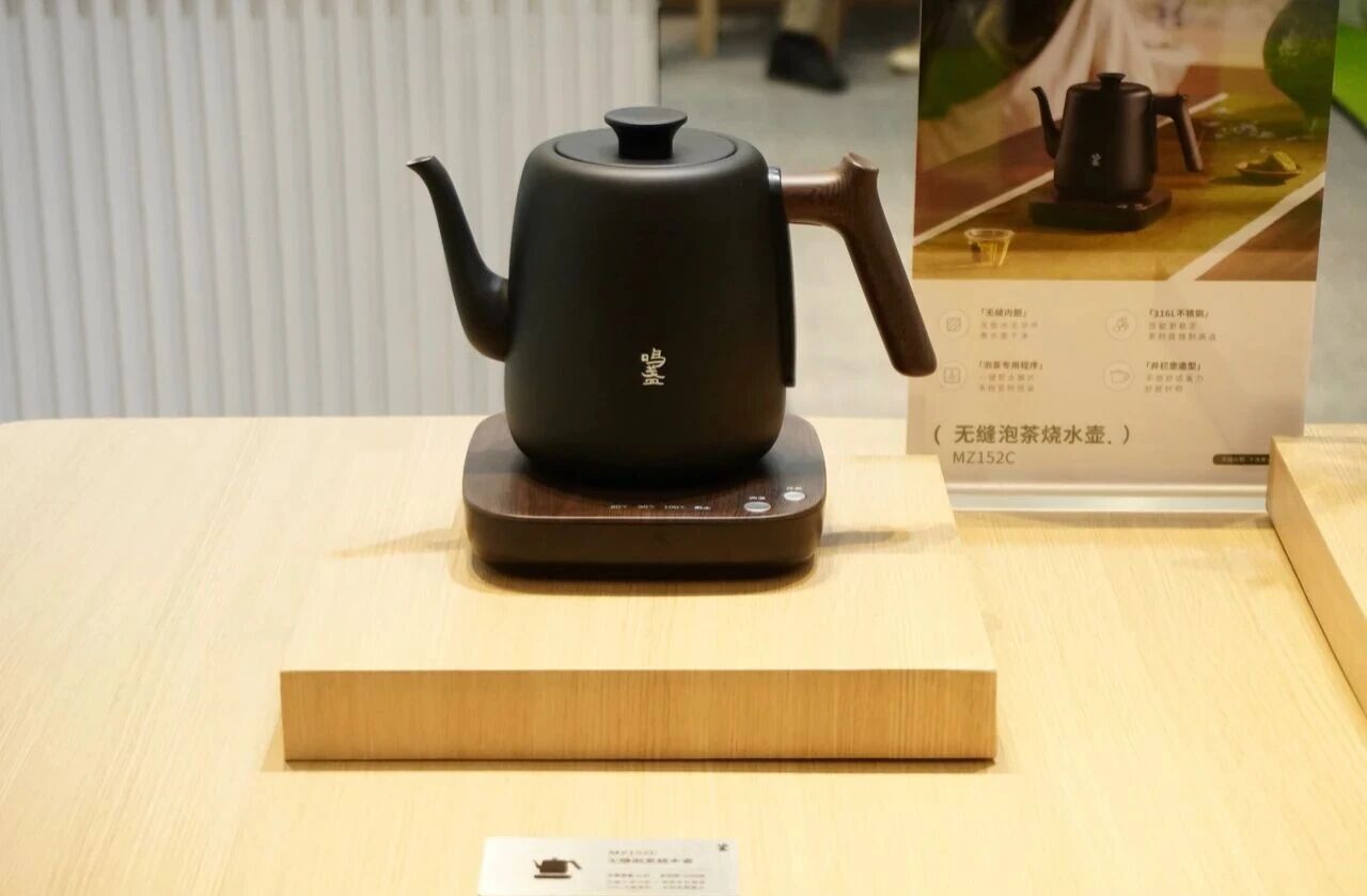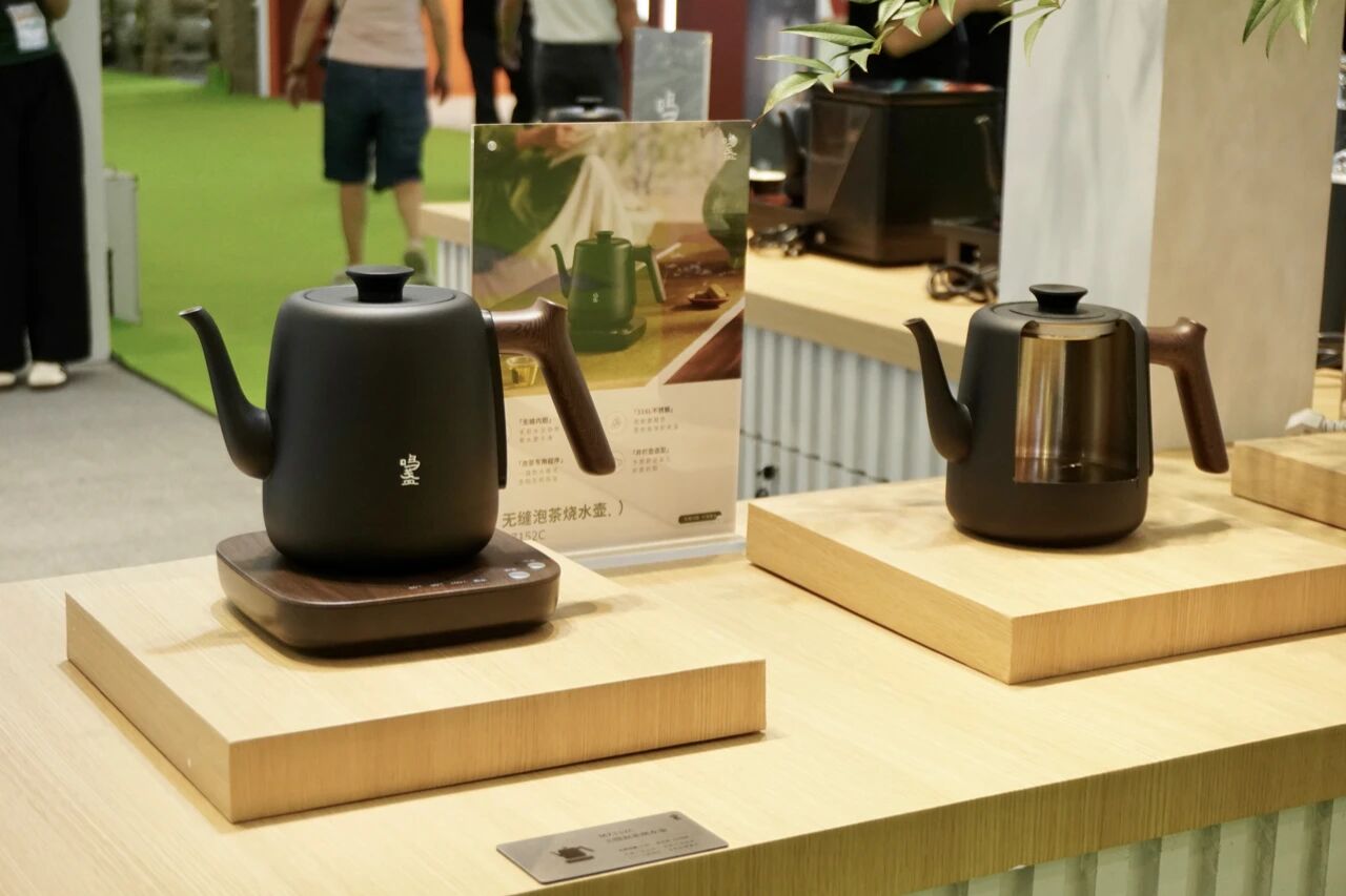 鸣盏作为新宝股份旗下智能茶具品牌,本次茶博会携多款新品智能茶具亮相,涵盖烧水壶、纯钛、煮茶器、泡茶机和茶家居五大系列产品。