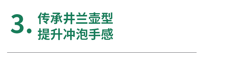 沿用经典井兰壶造型,提壶更省力,高颜值外观百搭各式喝茶空间,树杈型手柄搭配鹅颈壶嘴,倒水利落,收水果断。