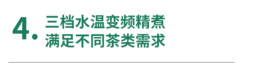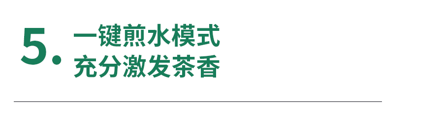 冲泡黑茶、老白茶等发酵程度高的老茶时,对水温要求较高,可使用【煎水】模式,系统持续大沸腾保持高水温,更好激发茶叶香气。当水温下降时,可以一键复沸,保持大沸腾,确保高温冲泡,易于激发熟茶的香气。