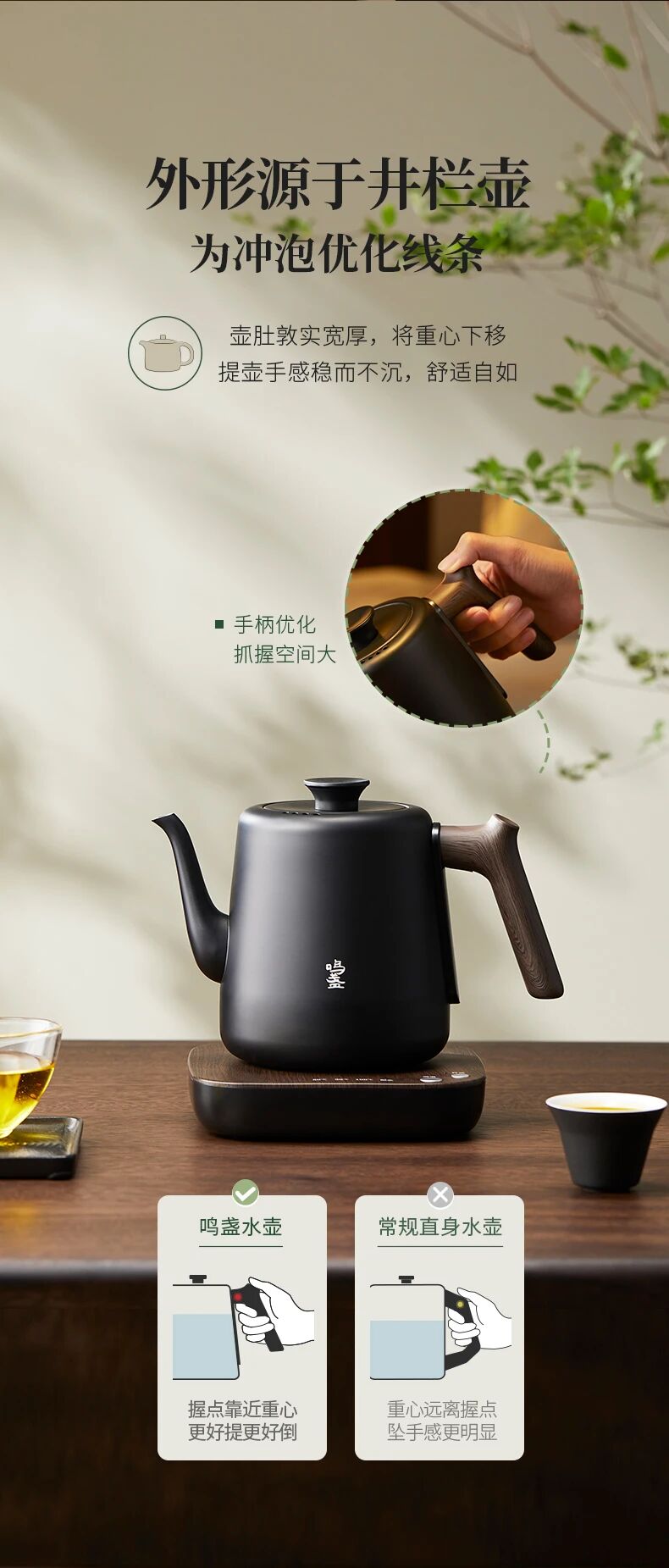 鸣盏推出全新无缝烧水壶,创新无缝内胆工艺,烧水更干净,茶汤更醇香。